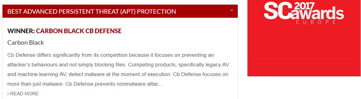 新世代端点防护Carbon Black 荣获 SC Awards Europe 2017最佳APT防护的殊荣!